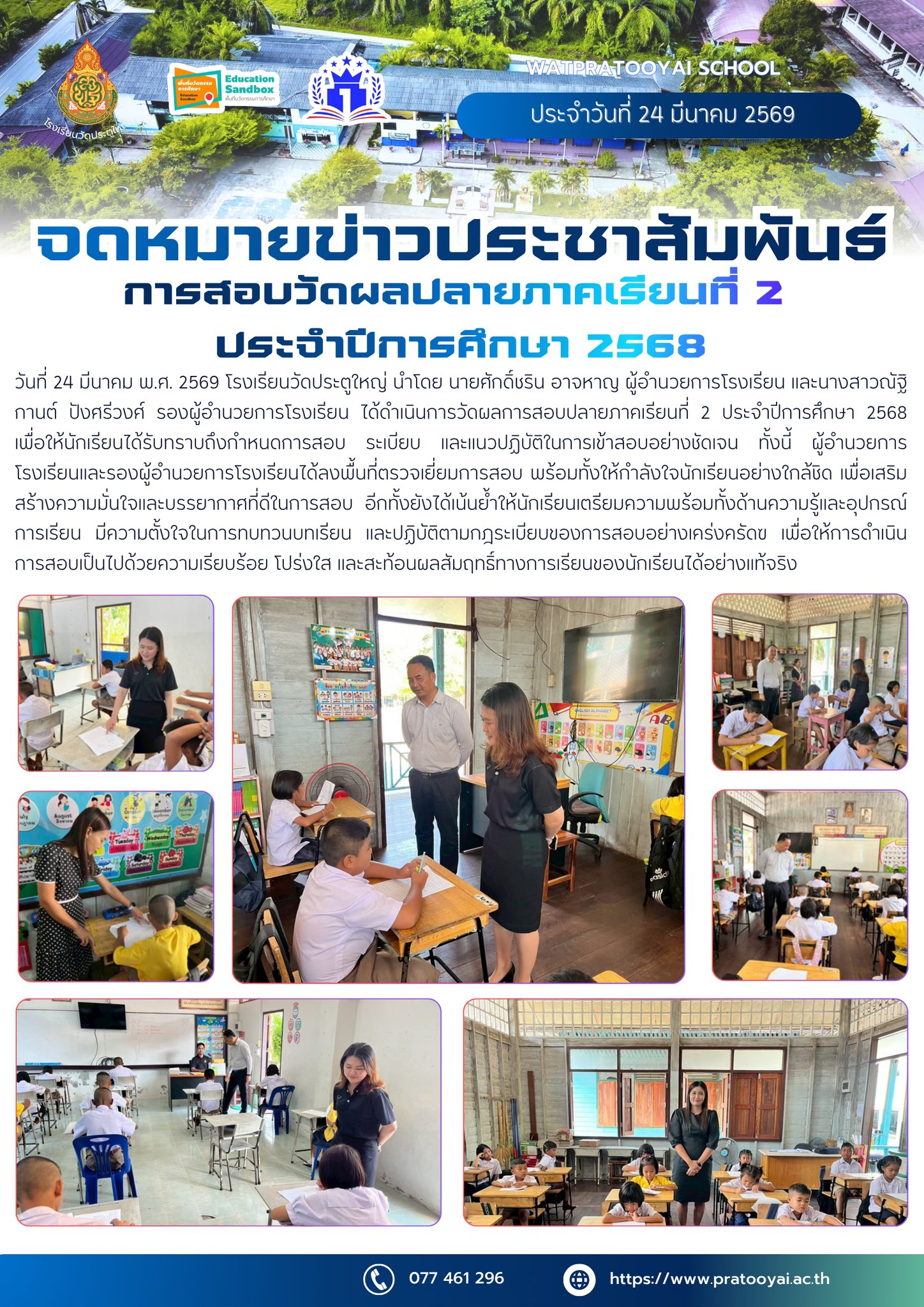 การทดสอบวัดผลการสอบปลายภาคเรียนที่ 2 ประจำปีการศึกษา 2568