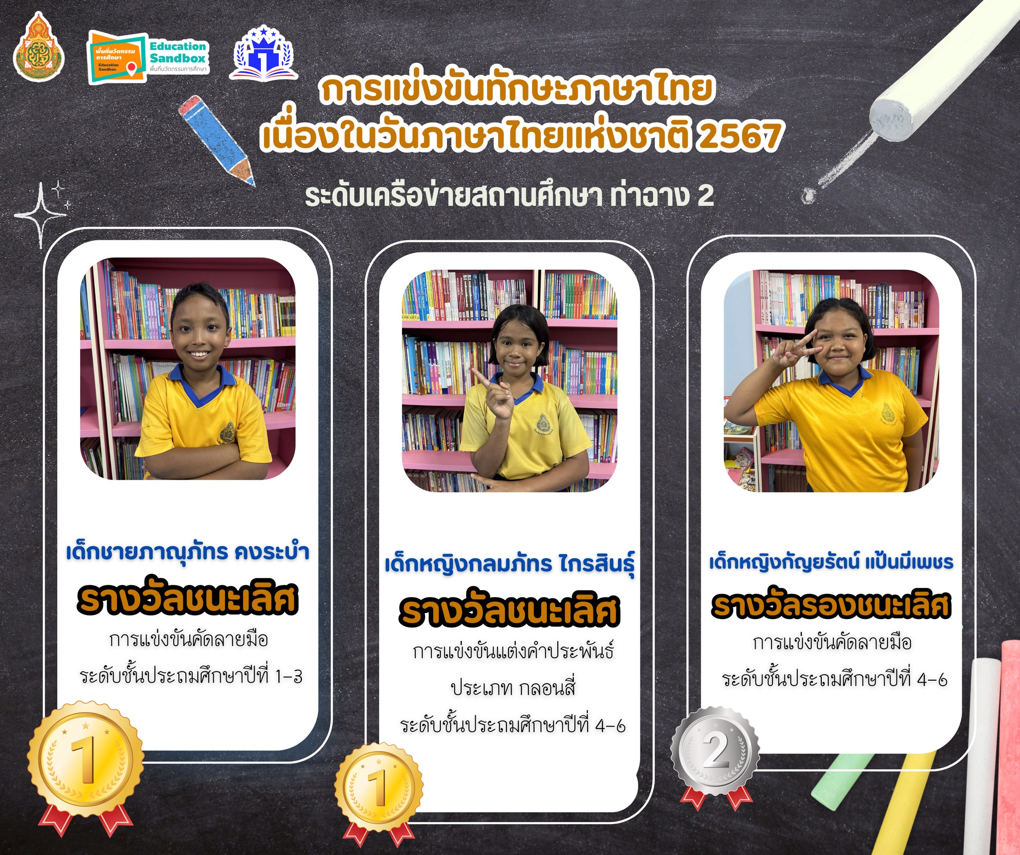 โรงเรียนวัดประตูใหญ่ ขอแสดงความยินดีกับนักเรียนใน การแข่งขันทักษะภาษาไทย เนื่องในวันภาษาไทยแห่งชาติ 2567