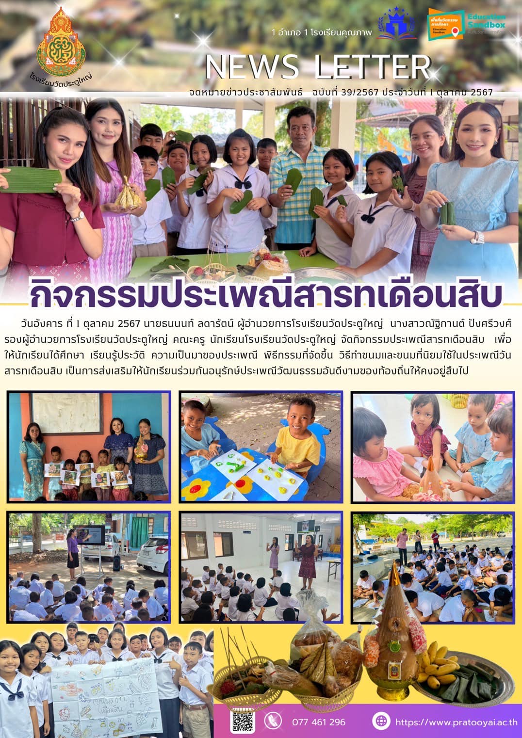 วันอังคาร ที่ 1 ตุลาคม 2567 นายธนนนท์ ลดารัตน์ ผู้อำนวยการโรงเรียนวัดประตูใหญ่ นางสาวณัฐิกานต์ ปังศรีวงศ์ รองผู้อำนวยการโรงเรียนวัดประตูใหญ่ คณะครู นักเรียนโรงเรียนวัดประตูใหญ่ จัดกิจกรรมประเพณีสารทเดือนสิบ เพื่อให้นักเรียนได้ศึกษา เรียนรู้ประวัติ ความเป็นมาของประเพณี พิธีกรรมที่จัดขึ้น วิธีทำขนมและขนมที่นิยมใช้ในประเพณีวันสารทเดือนสิบ เป็นการส่งเสริมให้นักเรียนร่วมกันอนุรักษ์ประเพณีวัฒนธรรมอันดีงามของท้องถิ่นให้คงอยู่สืบไป