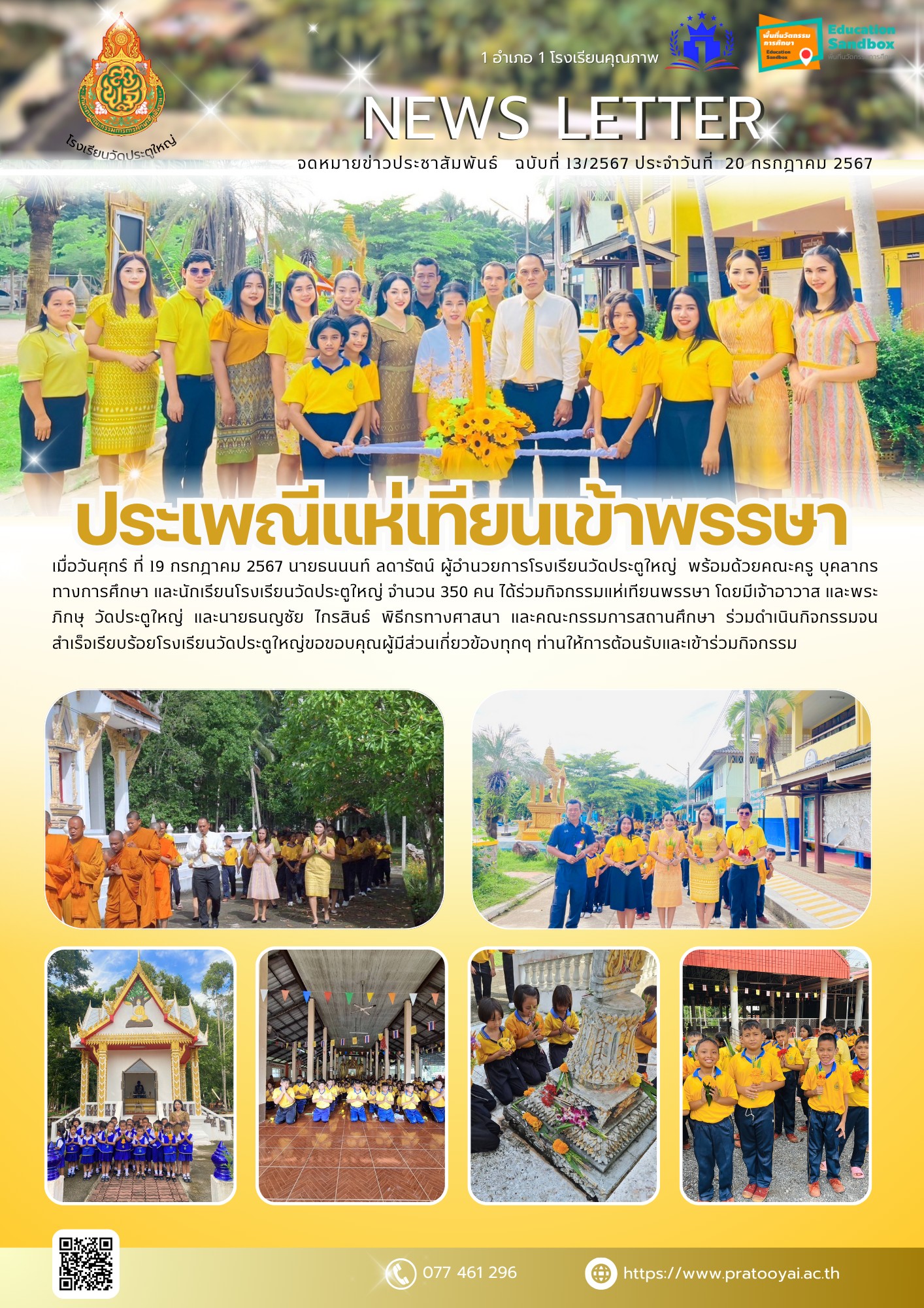 เมื่อวันศุกร์ ที่ 19 กรกฎาคม 2567 นายธนนนท์ ลดารัตน์ ผู้อำนวยการโรงเรียนวัดประตูใหญ่ พร้อมด้วยคณะครู บุคลากรทางการศึกษา และนักเรียนโรงเรียนวัดประตูใหญ่ จำนวน 350 คน ได้ร่วมกิจกรรมแห่เทียนพรรษา โดยมีเจ้าอาวาส และพระภิกษุ วัดประตูใหญ่ และนายธนญชัย ไกรสินธ์ พิธีกรทางศาสนา และคณะกรรมการสถานศึกษา ร่วมดำเนินกิจกรรมจนสำเร็จเรียบร้อยโรงเรียนวัดประตูใหญ่ขอขอบคุณผู้มีส่วนเกี่ยวข้องทุกๆ ท่านให้การต้อนรับและเข้าร่วมกิจกรรม