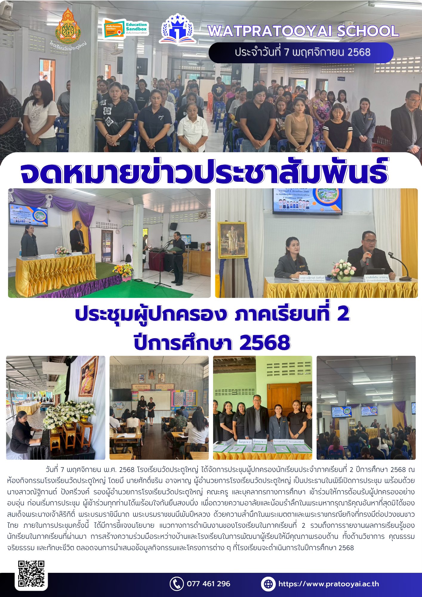 ประชุมผู้ปกครอง ภาคเรียนที่ 2 ปีการศึกษา 2568