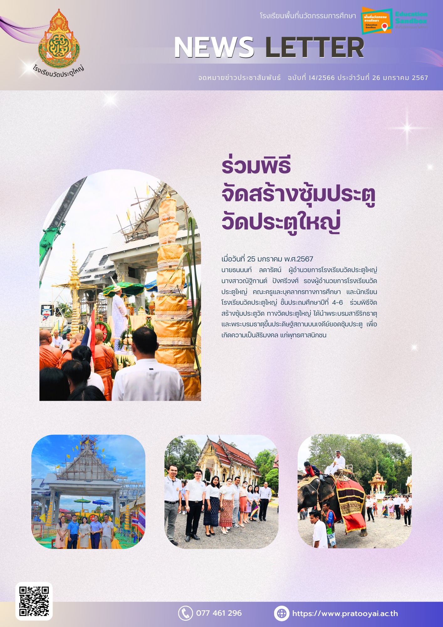 นายธนนนท์ ลดารัตน์ ผู้อำนวยการโรงเรียนวัดประตูใหญ่ นางสาวณัฐิกานต์ ปังศรีวงศ์ รองผู้อำนวยการโรงเรียนวัดประตูใหญ่ คณะครูและบุคลากรทางการศึกษา และนักเรียนโรงเรียนวัดประตูใหญ่ ชั้นประถมศึกษาปีที่ 4-6 ร่วมพิธีจัดสร้างซุ้มประตูวัด ทางวัดประตูใหญ่ ได้นำพระบรมสารีริกธาตุและพระบรมธาตุขึ้นประดิษฐ์สถานบนเจดีย์ยอดซุ้มประตู เพื่อเกิดความเป็นสิริมงคล แก่พุทธศาสนิกชน