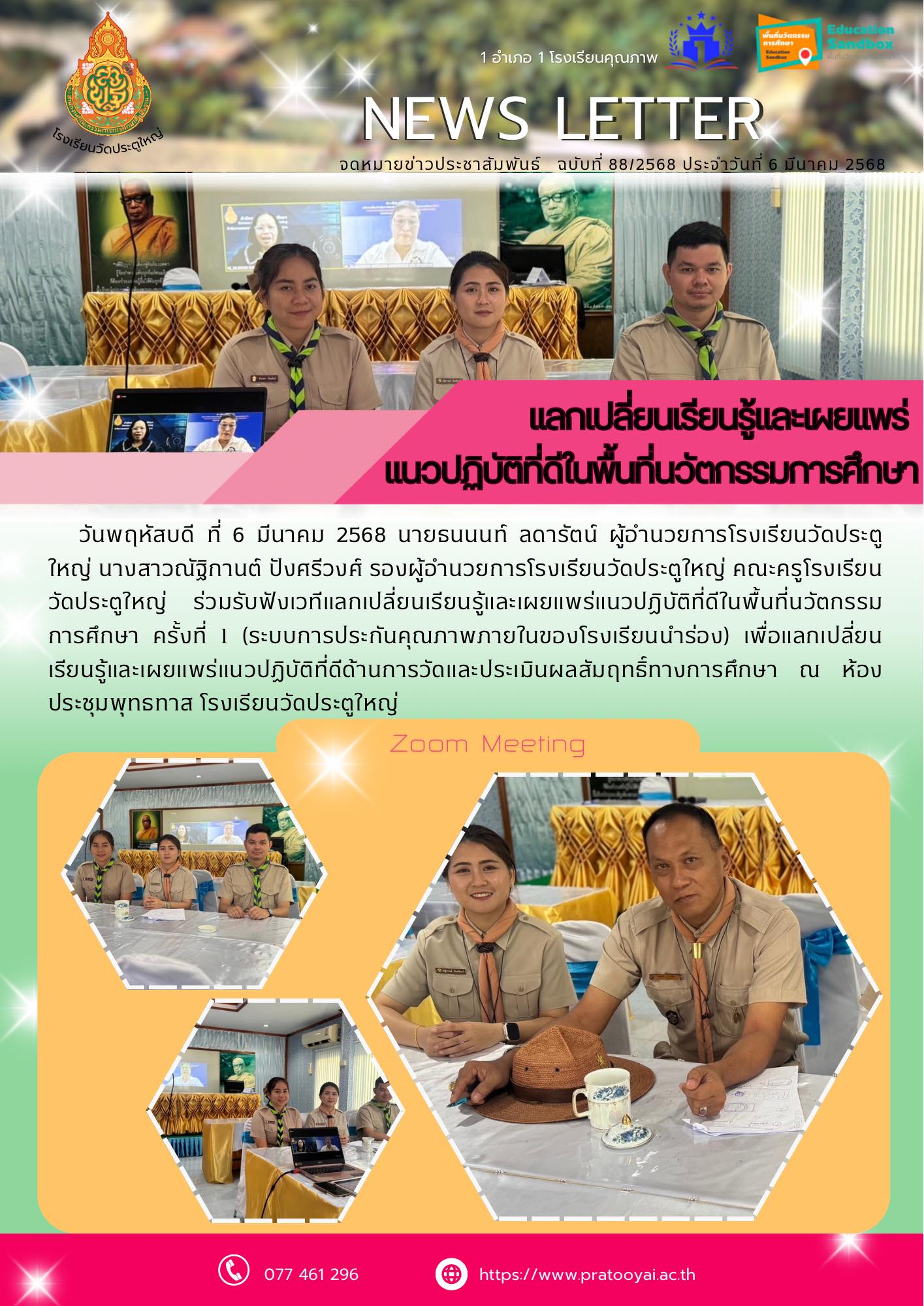 วันพฤหัสบดี ที่ 6 มีนาคม 2568 นายธนนนท์ ลดารัตน์ ผู้อำนวยการโรงเรียนวัดประตูใหญ่ นางสาวณัฐิกานต์ ปังศรีวงศ์ รองผู้อำนวยการโรงเรียนวัดประตูใหญ่ คณะครูโรงเรียนวัดประตูใหญ่ ร่วมรับฟังเวทีแลกเปลี่ยนเรียนรู้และเผยแพร่แนวปฏิบัติที่ดีในพื้นที่นวัตกรรมการศึกษา ครั้งที่ 1 (ระบบการประกันคุณภาพภายในของโรงเรียนนำร่อง) เพื่อแลกเปลี่ยนเรียนรู้และเผยแพร่แนวปฏิบัติที่ดีด้านการวัดและประเมินผลสัมฤทธิ์ทางการศึกษา ณ ห้องประชุมพุทธทาส โรงเรียนวัดประตูใหญ่